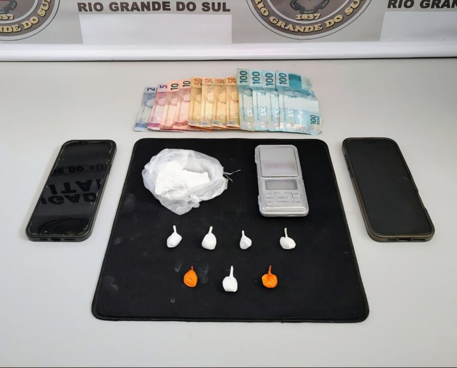 Segundo a corporação, um dos detidos, de 23 anos, foi flagrado com 47 gramas de cocaína e R$ 627,00. O outro suspeito, de 30 anos, possuía sete porções de cocaína. Com ambos, os policiais ainda apreenderam dois celulares e uma balança de precisão.