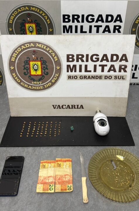 A Brigada Militar, por meio da Força Tática do 10º Batalhão de Polícia Militar (10º BPM), prendeu em flagrante, na madrugada de quinta-feira, 27 de novembro, um indivíduo por tráfico de entorpecentes no bairro Barcellos, em Vacaria.