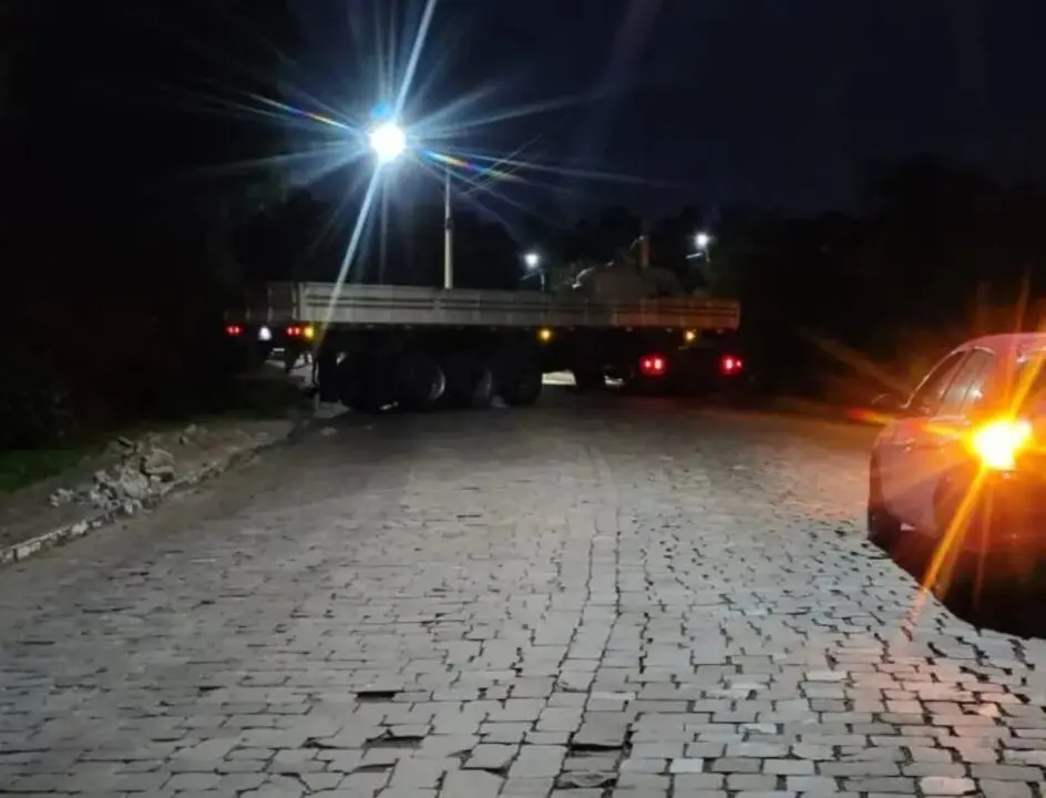 Caminhão bloqueia totalmente a Rua Bento Gonçalves em Cotiporã após perder o controle