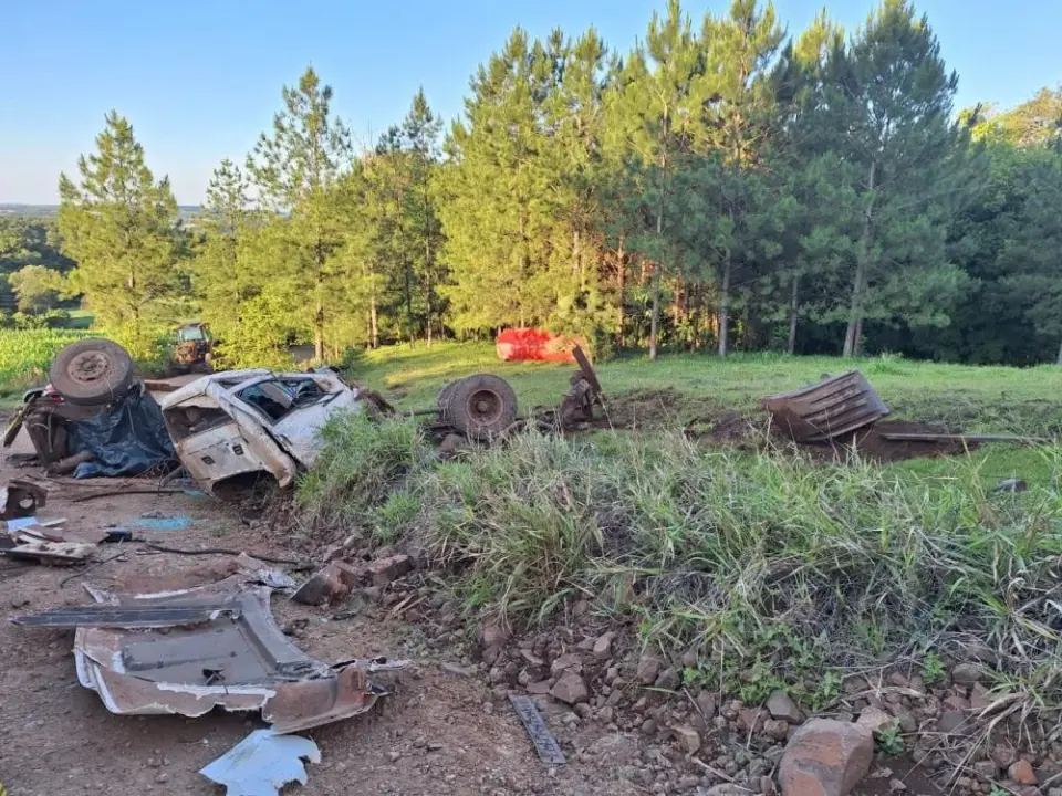 Caminhão capota e deixa uma vítima fatal em estrada do interior de Horizontina