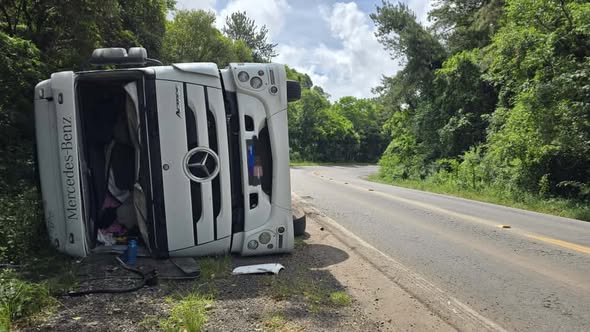 No início da tarde de segunda-feira, 17 de novembro, um caminhão Mercedes-Benz Actros, com placas padrão Mercosul, tombou no km 202 da ERS-324, no trecho entre Passo Fundo e Marau. O veículo seguia de Itajaí (SC) carregado com um contêiner quando o motorista perdeu o controle na curva acentuada da rodovia, fazendo o caminhão tombar no acostamento.