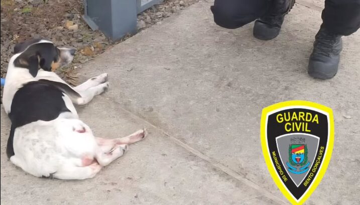 Um cachorro atropelado foi salvo graças à ação rápida da Guarda Civil Municipal e do Departamento Bento Pet