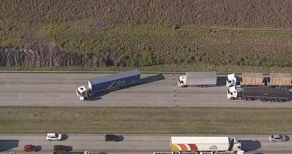 O trânsito no Rodoanel Mário Covas ficou completamente parado na manhã desta quarta-feira (12) depois que uma carreta foi deixada atravessada na pista, na altura do km 44, em Itapecerica da Serra, na Grande São Paulo. O bloqueio ocorre no sentido da Rodovia Presidente Dutra, provocando 16 km de congestionamento. No sentido oposto, apenas uma faixa permanece aberta, e os veículos estão sendo desviados para a Rodovia Régis Bittencourt.