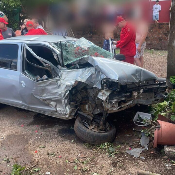 Um Chevrolet Prisma colidiu contra uma residência na Rua João Bortolini, no bairro Santa Rita, em Marau, no domingo, 2 de novembro, por volta do meio-dia.