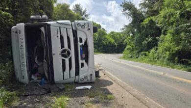Carro de Farroupilha capota após aquaplanagem na ERS-122, em São Sebastião do Caí