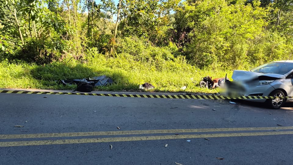 Um acidente entre um carro e uma motocicleta deixou uma vítima fatal e outra com ferimentos graves na manhã desta terça-feira, 11 de novembro, no Km 16 da VRS-855, estrada que liga Bento Gonçalves a Pinto Bandeira.