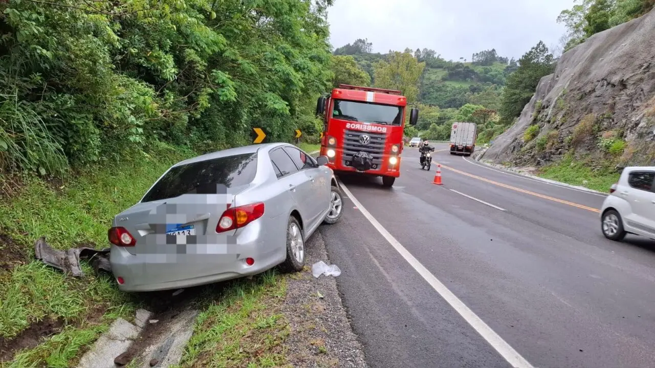 Um condutor de 26 anos sofreu ferimentos moderados após colidir contra uma rocha na RSC-453, a Rota do Sol, em Westfália, na tarde de sábado, 8 de novembro. O acidente ocorreu por volta das 15h, no quilômetro 62 da rodovia.