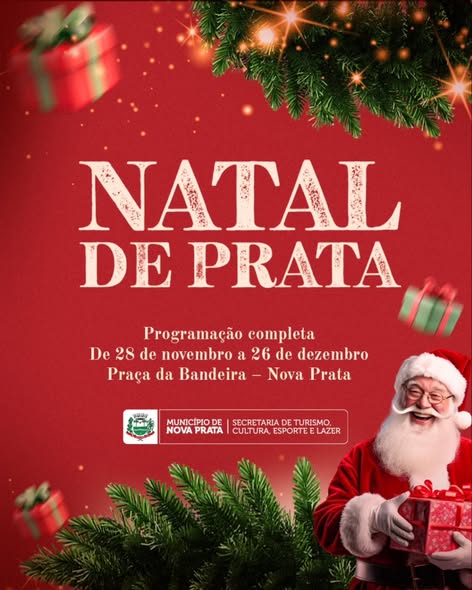 O Natal de Prata 2025 já começou em Nova Prata com uma vasta programação que se estende de 28 de novembro a 26 de dezembro, reunindo atrações culturais, musicais, teatrais e momentos especiais com o Papai Noel. As atividades ocorrem principalmente na Praça da Bandeira e na Confraria da Gastronomia, prometendo encantar crianças, famílias e visitantes durante todo o período natalino.