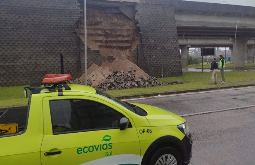 A Ecovias Sul informou que, na tarde desta sexta-feira, 7 de novembro, ocorreu o desmoronamento parcial da lateral do muro de contenção do viaduto (Muro Terrae) localizado no km 514 da BR-116, sentido Camaquã, próximo ao acesso à Vila Princesa, em Pelotas. Por medida de segurança, o tráfego de veículos foi desviado para a via marginal, enquanto técnicos e engenheiros avaliam a extensão dos danos.
