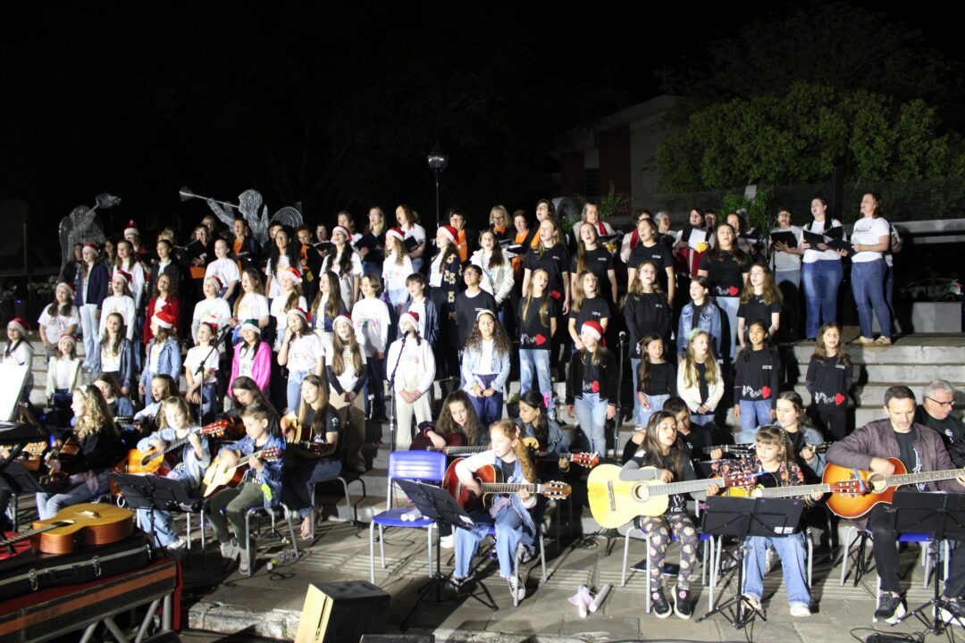 A programação começou com as apresentações das escolas municipais, que levaram encanto e alegria ao palco. Em seguida, o público se emocionou com a Cantata de Natal “Sons de Esperança”, reunindo mais de 100 cantores e 35 instrumentistas, sob a direção do professor Dinei Maroso.