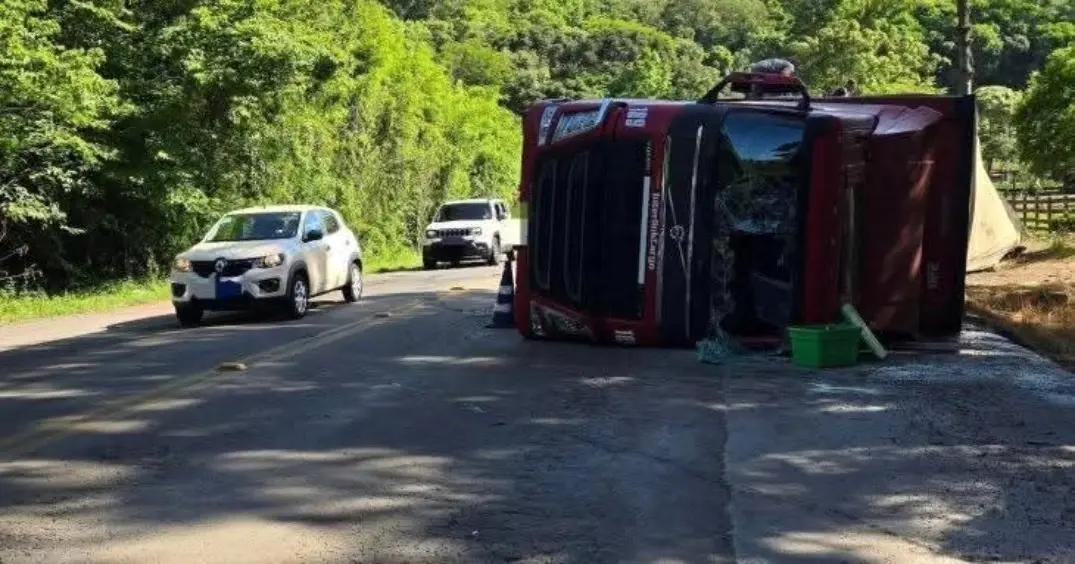 Mais um acidente envolvendo uma carreta foi registrado na ERS-324, na tarde de terça-feira (18), acentuando a preocupação com a sequência de sinistros no trecho entre Passo Fundo e Marau. O caso ocorreu na perigosa curva do Burro Preto, onde um caminhão Volvo FH com placas de São Paulo tombou, deixando o motorista ferido. Ele foi encaminhado ao Hospital Cristo Redentor, em Marau, enquanto o trânsito passou a operar no sistema pare e siga, com liberação parcial da pista a cada 15 minutos.