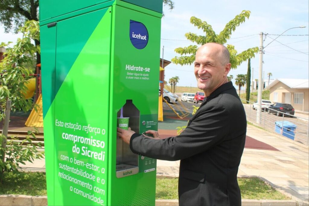 Em uma ação que reforça o compromisso com a comunidade, a Cooperativa de Crédito Sicredi Serrana inaugurou, na Praça Bella Vista, em Fagundes Varela, uma moderna estação de hidratação. O equipamento oferece água gelada, água quente e até água para pets, garantindo conforto e praticidade para todos os frequentadores do espaço público.
