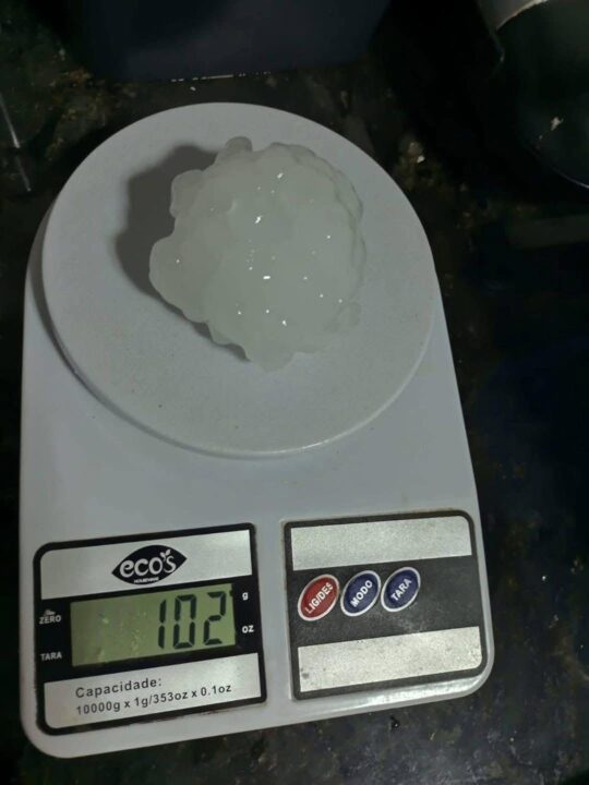Na região Oeste, câmeras de segurança registraram ventos intensos e uma sequência de raios em Campo Mourão. Em uma das imagens que circularam nas redes sociais, uma pedra de granizo chegou a pesar 102 gramas, evidenciando a força do fenômeno climático.