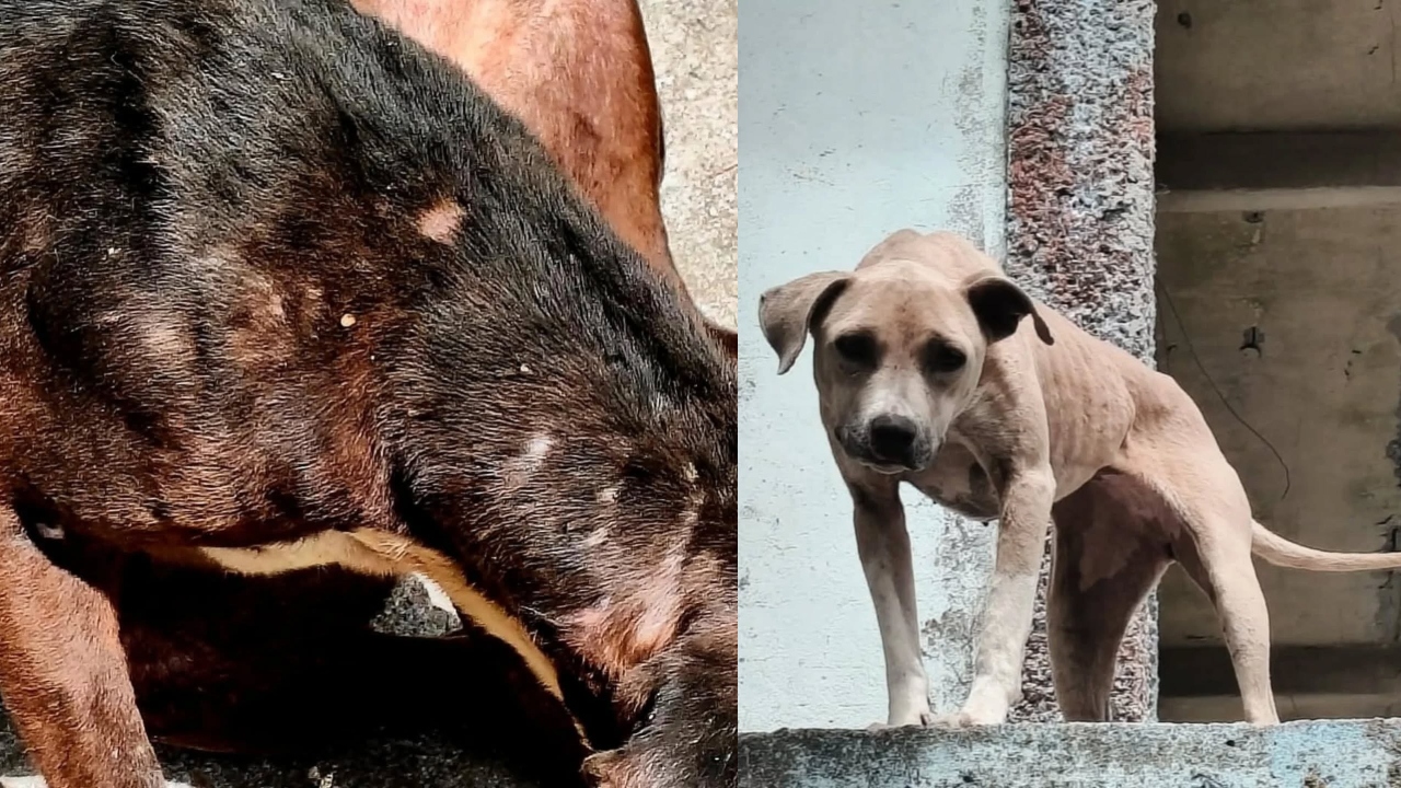 No local, foram encontrados dois cães com avançado grau de magreza, sendo que um deles apresentava infestação por parasitas. Ao ser questionado sobre o terceiro animal, o tutor informou que o cão não resistiu às condições e morreu há alguns dias.
