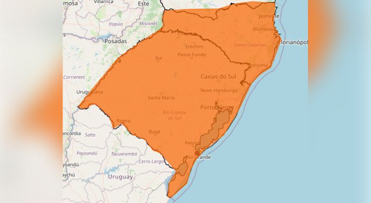O Instituto Nacional de Meteorologia (INMET) emitiu, na quarta-feira, 5 de novembro, um aviso de tempestade com nível de severidade “Perigo” para os estados do Rio Grande do Sul, Santa Catarina e Paraná. O alerta é válido das 22h de quinta-feira, 6 de novembro, até as 10h de sexta-feira, 7 de novembro.