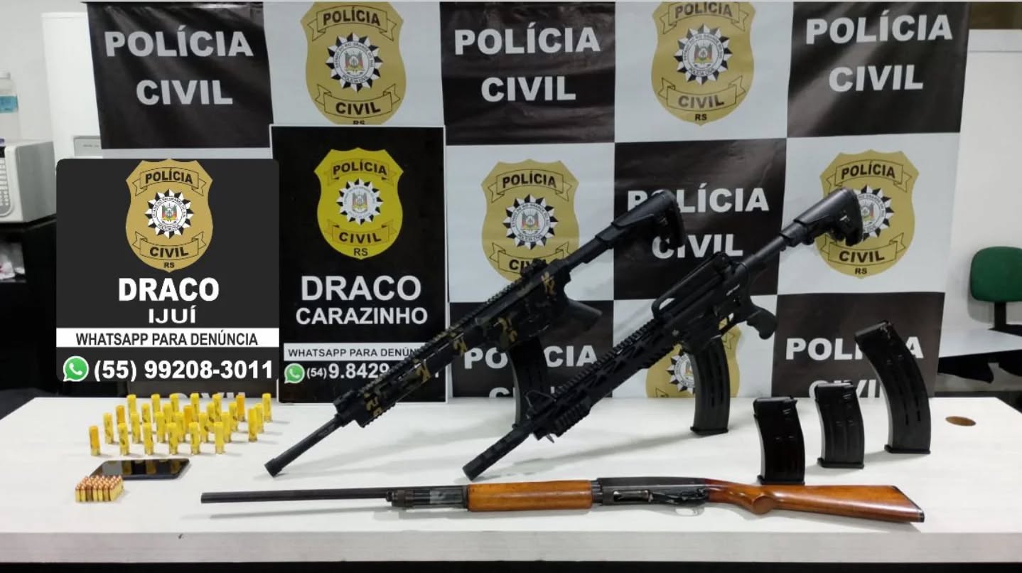 Uma ação conjunta das Delegacias de Repressão às Ações Criminosas Organizadas (DRACOs) de Carazinho e Ijuí resultou na prisão em flagrante de um homem de 26 anos e na apreensão de um arsenal de grosso calibre em Carazinho. A operação foi realizada no final da tarde desta sexta-feira, 7 de novembro, no bairro Ouro Preto, após troca de informações sobre o armazenamento de armamentos. As autoridades suspeitavam que as armas seriam utilizadas em crimes graves, como assaltos e homicídios, nas regiões Norte e Noroeste do Estado.