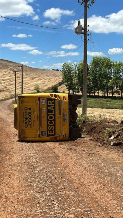 Quatro alunos se ferem após tombamento de ônibus escolar no RS