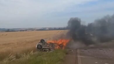 Um grave acidente na madrugada desta quarta-feira (12) na BR-376, em Guaratuba, litoral do Paraná, resultou na morte de uma pessoa e deixou ao menos 14 feridos, incluindo duas crianças. O engavetamento, que envolveu dois caminhões e uma van familiar com 16 ocupantes, ocorreu por volta das 5h em um trecho de obras. A van, que levava passageiros de Prudentópolis (PR) para o parque Beto Carrero, em Santa Catarina, foi atingida por um caminhão que, segundo os bombeiros, perdeu o freio. O impacto projetou o veículo contra a mureta e provocou um incêndio que destruiu parte dos veículos. O motorista de um dos caminhões morreu preso às ferragens.