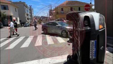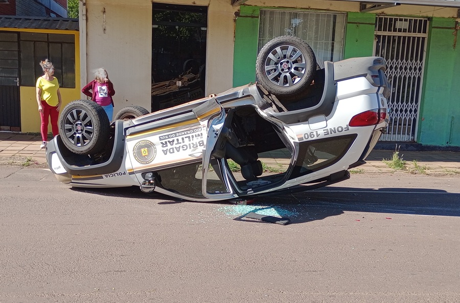 Viatura da Brigada Militar capota após colisão no centro de Barão de Cotegipe