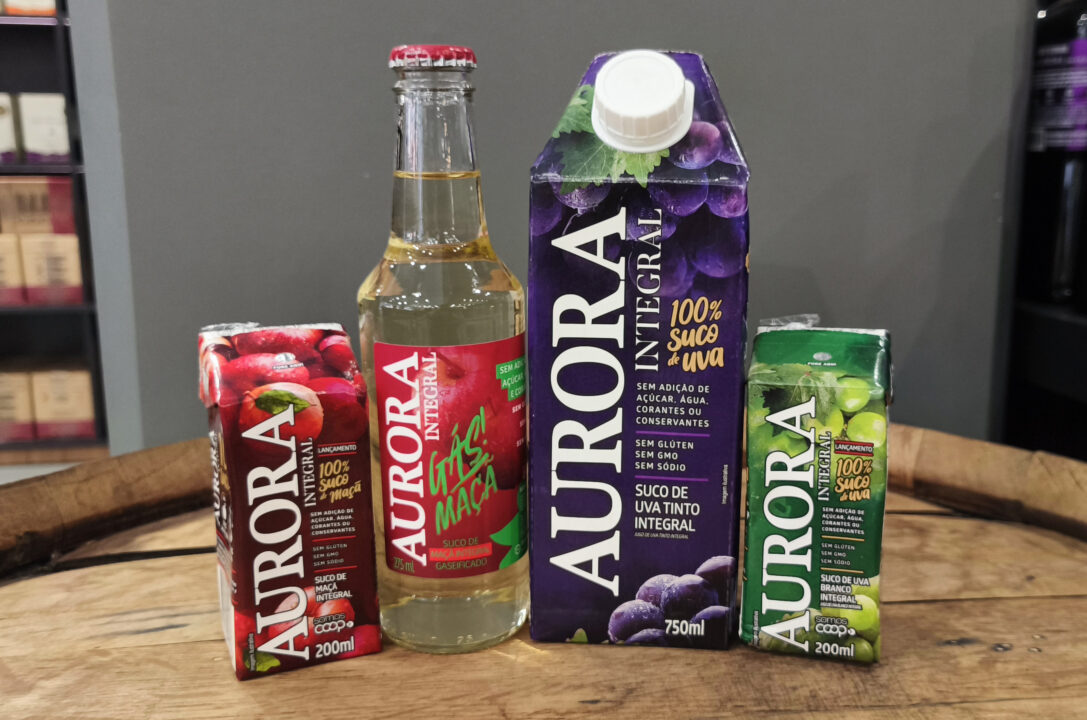 Em 2025, a Vinícola Aurora ampliou sua linha de bebidas não alcoólicas, com novos sabores, embalagens e formatos. O principal lançamento foi o suco de maçã gaseificado, sem adição de açúcar, corantes ou conservantes, em garrafa de vidro de 275 ml, apresentado como uma alternativa natural e sofisticada.
