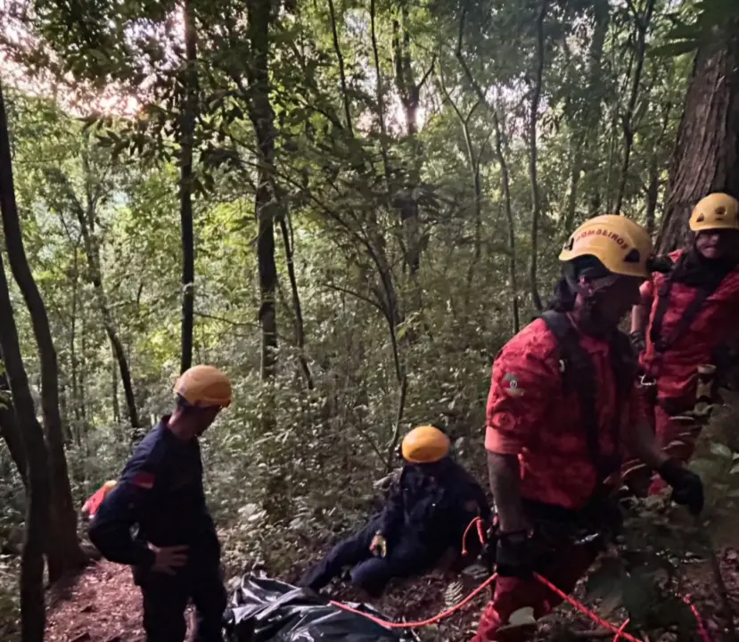 A vítima estava em uma área de mata fechada e de difícil acesso, o que exigiu técnicas especializadas de salvamento em terreno íngreme. Devido à complexidade da operação, foi acionado o apoio da equipe terrestre do Batalhão de Busca e Resgate (BBS), garantindo uma atuação segura, técnica e respeitosa.