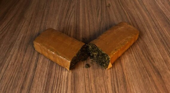 Mesmo após buscas intensas, o suspeito não foi localizado. No retorno ao ponto onde os objetos haviam sido descartados, os policiais encontraram uma sacola plástica contendo dois tijolos de substância semelhante à maconha, totalizando 830 gramas.