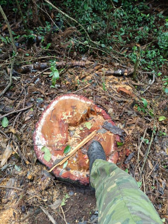 Equipe do 3º Batalhão Ambiental constatou abate de 32 pinheiros-brasileiros em propriedade rural; espécie é ameaçada e tem corte proibido