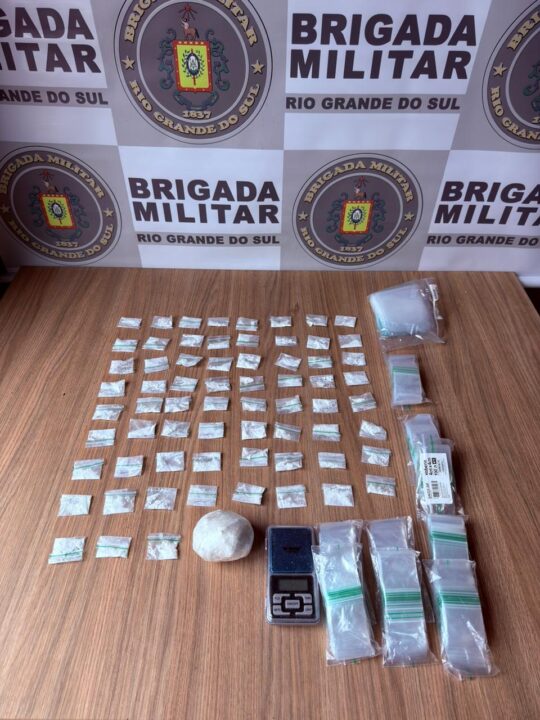 Durante a ação, os policiais localizaram 67 porções de cocaína, totalizando 50 gramas, além de uma porção maior da droga pesando 107 gramas, uma balança de precisão e diversas embalagens do tipo zip lock, utilizadas para o fracionamento e acondicionamento do entorpecente.