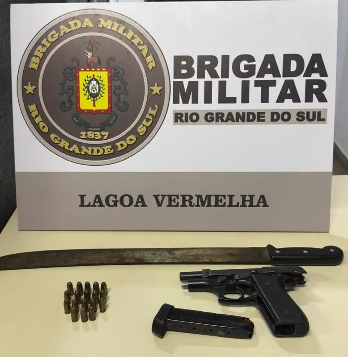 O indivíduo recebeu atendimento médico e foi encaminhado a uma unidade de saúde. Durante a averiguação, a Brigada Militar apreendeu uma pistola calibre .380, municiada com 18 munições intactas, além de um facão, materiais utilizados nas ameaças.