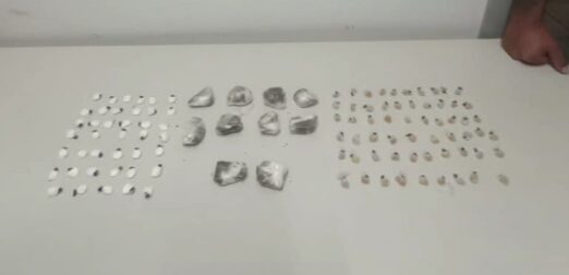 Durante o patrulhamento ostensivo em uma área conhecida pela venda de drogas, os policiais abordaram o suspeito e encontraram 40 porções de cocaína, 10 porções de maconha e 59 pedras de crack em sua posse.