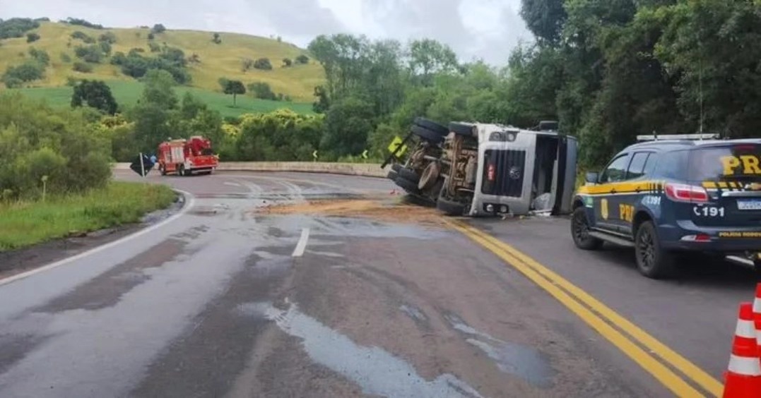 Caminhão tomba na BR-116 em Vacaria e deixa dois feridos