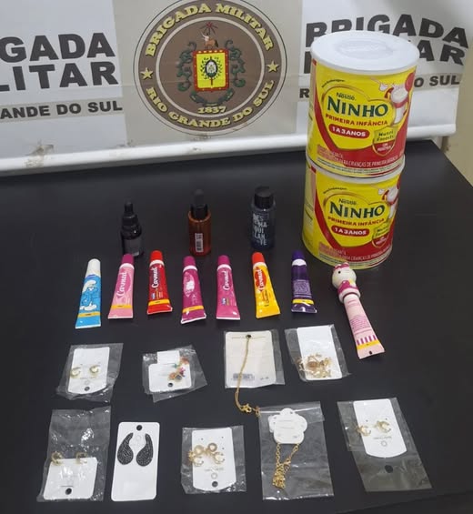 Segundo informações repassadas pela BM, o homem foi imobilizado por um funcionário do estabelecimento até a chegada da guarnição, enquanto a mulher tentou fugir e foi encontrada escondida em uma banca comercial próxima. Com ela e com as crianças, foram apreendidos diversos produtos sem nota fiscal, como leite em pó, semi joias, hidratantes labiais e até lubrificante íntimo. Parte dos objetos estava escondida na bolsa de uma das crianças, o que agravou ainda mais a situação.