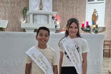 Com muita alegria, a Comunidade Menino Jesus de Praga, de Veranópolis, apresentou os novos representantes do Bairro Renovação. Foram escolhidos Ana Laura Von Mullen e Lucas Pereira de Mattos como Princesa e Príncipe, símbolos de união, alegria e carinho que representam o espírito participativo da comunidade.