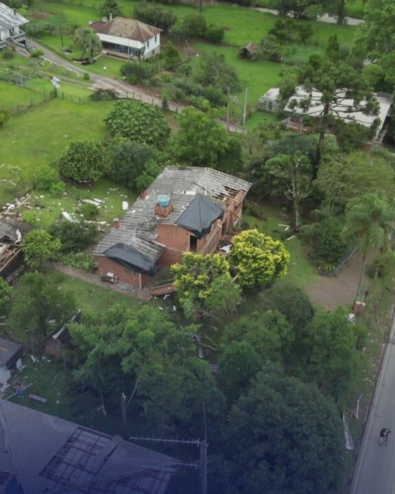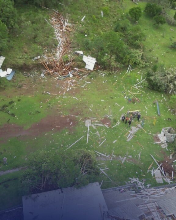 A constatação foi feita após análises detalhadas de imagens aéreas realizadas pela equipe do Departamento de Gestão de Riscos e por profissionais do Centro de Monitoramento da Defesa Civil do Rio Grande do Sul. As imagens da comunidade de Vila Rica, no interior do município, mostraram destroços lançados em múltiplas direções, o que caracteriza esse tipo de evento climático.