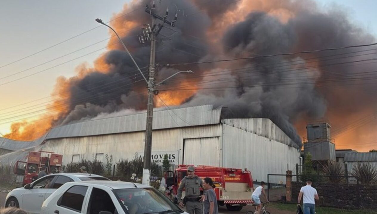 Fábrica de móveis é destruída por incêndio de grande proporção em Lagoa Vermelha