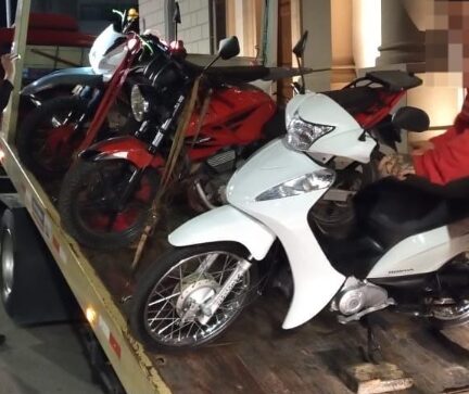 Durante a inspeção técnica, os agentes identificaram que o motor pertencia a outro modelo e apresentava registro de chassi baixado, caracterizando adulteração. Diante da irregularidade, a motocicleta foi removida administrativamente.