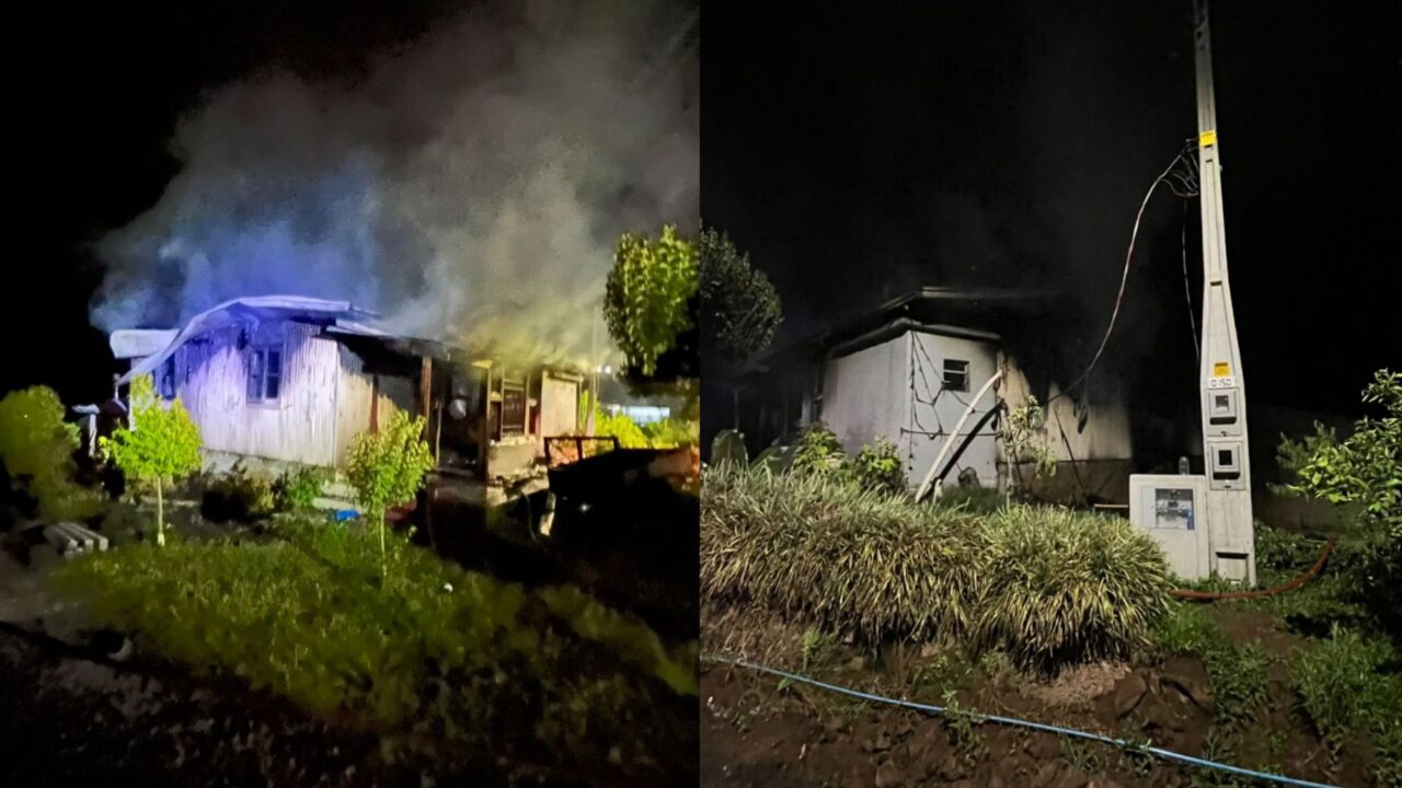 Chamas atingiram imóvel na localidade de Faria Lemos, na RS-431, na noite de quarta-feira; não houve vítimas e residência vizinha foi protegida