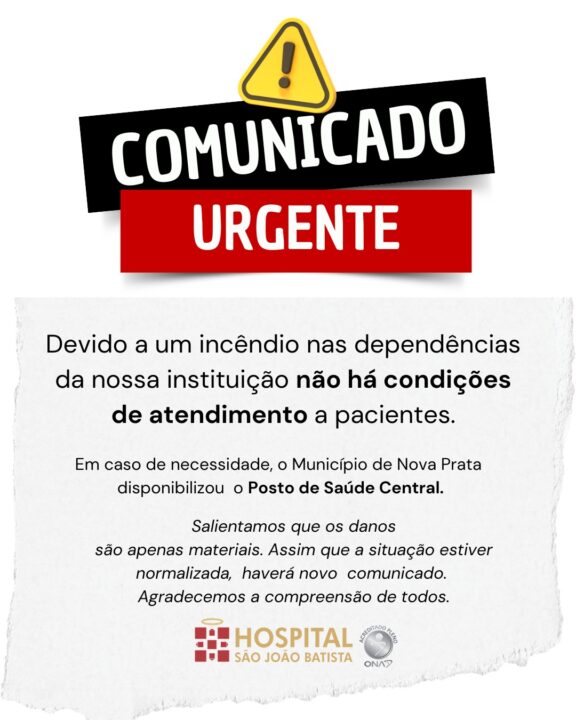O hospital informa que, devido a um incêndio ocorrido nas dependências da instituição, não há condições de atendimento aos pacientes no momento.