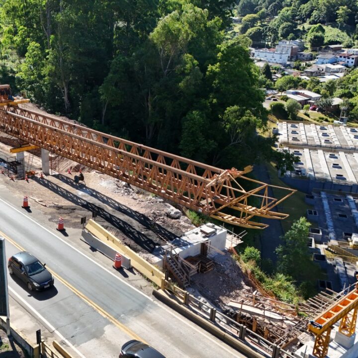 As operações de içamento das vigas seguem até quinta-feira, 18 de dezembro, com a instalação de 12 estruturas, o que representa 50% do total previsto para a obra. A próxima etapa está programada para iniciar em 6 de janeiro de 2026, quando serão lançadas as vigas restantes, com conclusão estimada até 18 de janeiro de 2026.