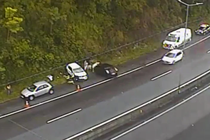 Dois policiais rodoviários federais e dois pedestres ficaram feridos após serem atropelados no acostamento da BR-101, em Biguaçu, na quarta-feira, 24 de dezembro. O grupo realizava o atendimento de uma ocorrência quando um veículo de cor escura perdeu o controle em uma curva com pista molhada e atingiu as vítimas. O socorro foi prestado por equipes da concessionária Arteris Litoral Sul e do Samu, que encaminharam os feridos para hospitais da região da Grande Florianópolis.