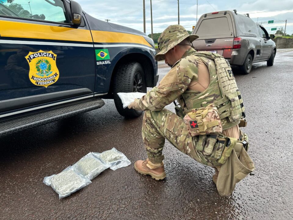 Ação contou com apoio aéreo e resultou na apreensão da droga escondida sob o banco do passageiro