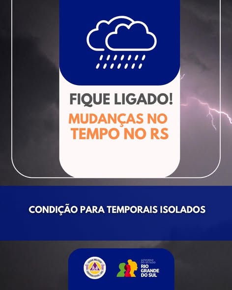 A Defesa Civil do Rio Grande do Sul divulgou que os próximos dias exigem atenção redobrada no estado devido à previsão de tempo severo associado à formação de um ciclone extratropical. O alerta vale para diversas regiões do estado, com riscos que incluem chuva forte, ventos intensos, descargas elétricas e granizo.