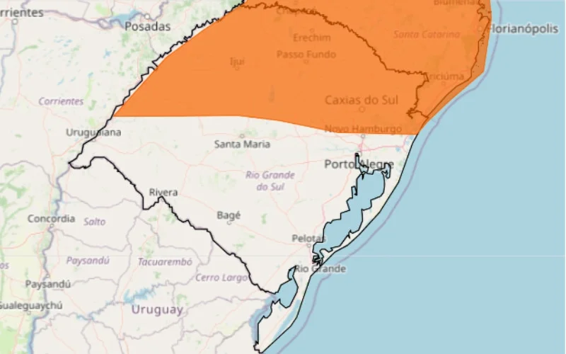 Um novo alerta laranja emitido pelo Inmet (Instituto Nacional de Meteorologia) chama a atenção dos moradores do Rio Grande do Sul e de mais três estados brasileiros. O aviso, que entrou em vigor nesta segunda-feira (29) e segue até o fim da terça-feira (30), prevê chuvas intensas com volumes de até 100 milímetros por dia, queda de granizo e ventos fortes, elevando o risco de cortes de energia, alagamentos e estragos em plantações.