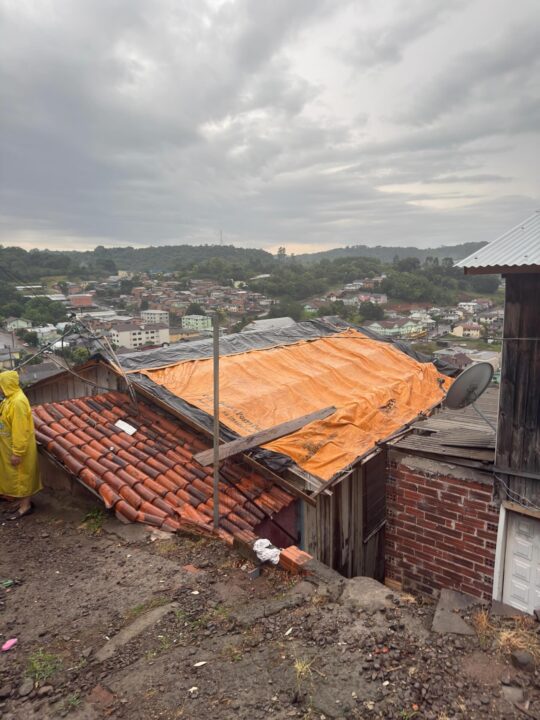 Um temporal registrado na tarde desta segunda-feira, 8 de dezembro, provocou destelhamento de residências no bairro Aparecida, em Antônio Prado. O Serviço Civil Auxiliar de Bombeiros (SCAB) foi acionado, por meio do telefone de emergência 193, para atender as ocorrências.