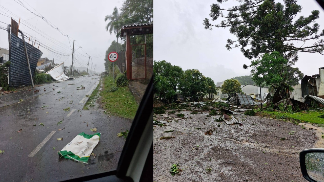 Um forte temporal acompanhado de vendaval atingiu o município de Farroupilha na tarde desta terça-feira, 23 de dezembro, provocando danos estruturais em diversos pontos da cidade. O fenômeno meteorológico resultou no destelhamento de empresas e moradias, mobilizando equipes de socorro e assistência. De acordo com informações preliminares, os principais estragos foram concentrados nos bairros São José, Imigrante e na localidade de Vila Rica, onde a força do vento removeu coberturas e causou prejuízos materiais.