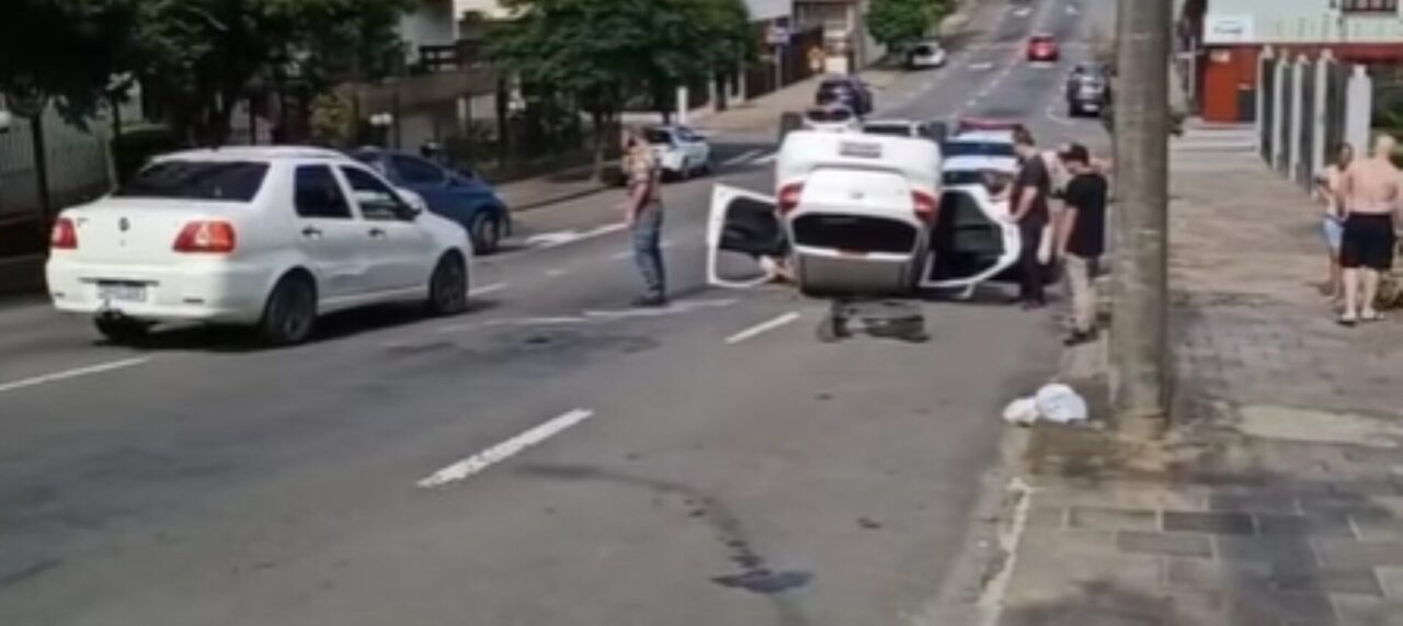 Um engavetamento envolvendo cinco automóveis causou o capotamento de um veículo na manhã desta sexta-feira, 16 de janeiro, em Caxias do Sul. O acidente ocorreu na rua General Mallet, no bairro Rio Branco, após um carro sair de uma vaga de estacionamento, desencadeando uma sequência de colisões. Entre os veículos atingidos estão um Ford Ka, um Fiat Argo, um Chevrolet Onix, um Citroën e um Volkswagen Gol que estava estacionado.