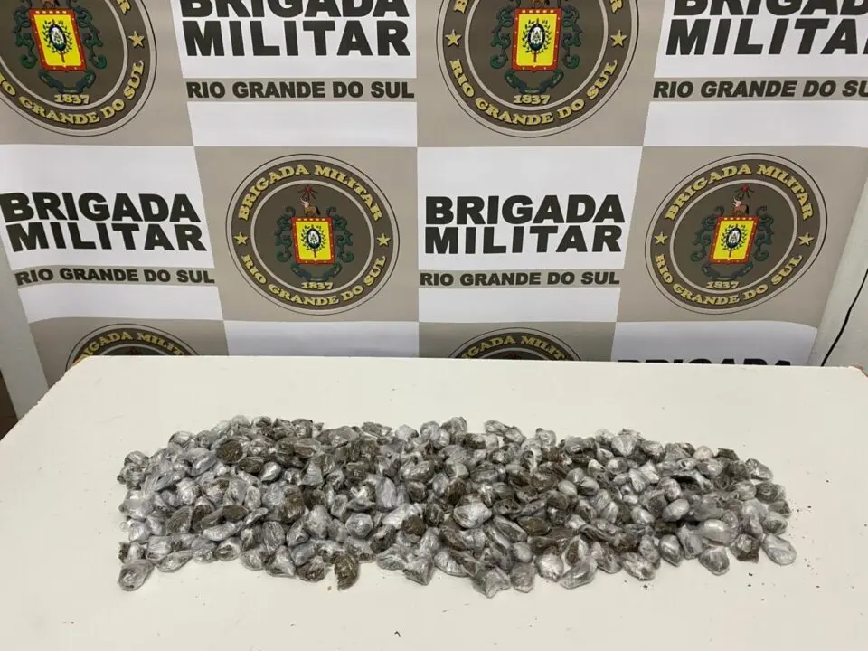 Mais de meio quilo de entorpecentes foi apreendido pela Brigada Militar de Farroupilha na madrugada desta terça-feira (20), durante uma ação no bairro Industrial. A ocorrência foi registrada por volta das 2h e resultou na localização de 337 porções de substância semelhante à maconha, além de 16 munições intactas de calibre .380.