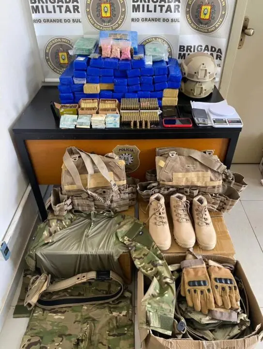 No local da abordagem, as guarnições recuperaram uma Toyota Hilux com placas clonadas e um Kia Sportage, ambos em situação de furto. Em buscas detalhadas na residência dos suspeitos, foram apreendidos cerca de 40 quilos de maconha, três quilos de cocaína, pedras de crack e comprimidos de ecstasy. Além dos entorpecentes, a polícia localizou mais de 700 munições de diversos calibres, carregadores de pistola e balanças de precisão.