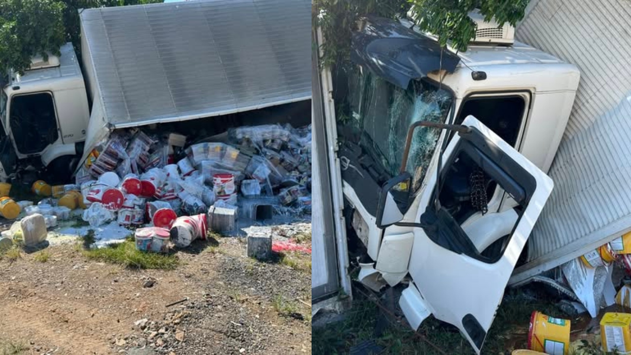 Apesar da cinemática do acidente, o condutor e o caroneiro não se feriram. O caminhão, com placas de Gravataí, estava carregado com galões de tinta no momento do ocorrido.