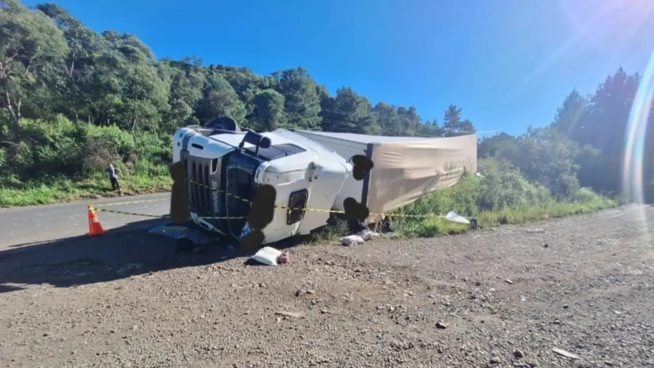 Caminhão tomba em rodovia de SC e deixa duas vítimas fatais
